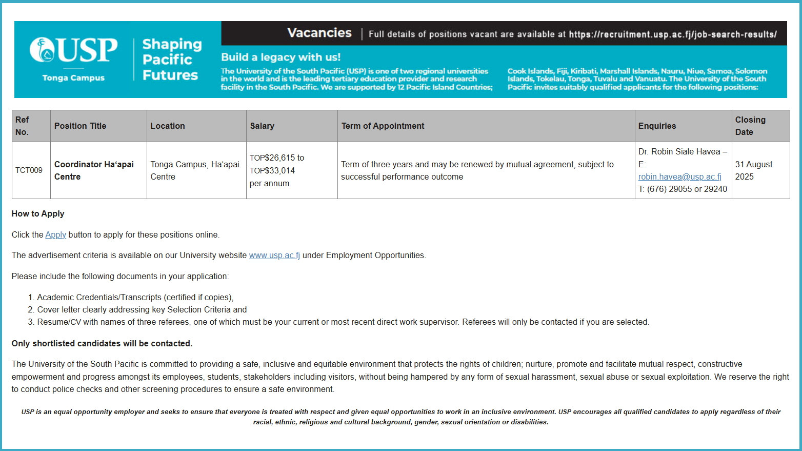 Coordinator – Ha’apai
