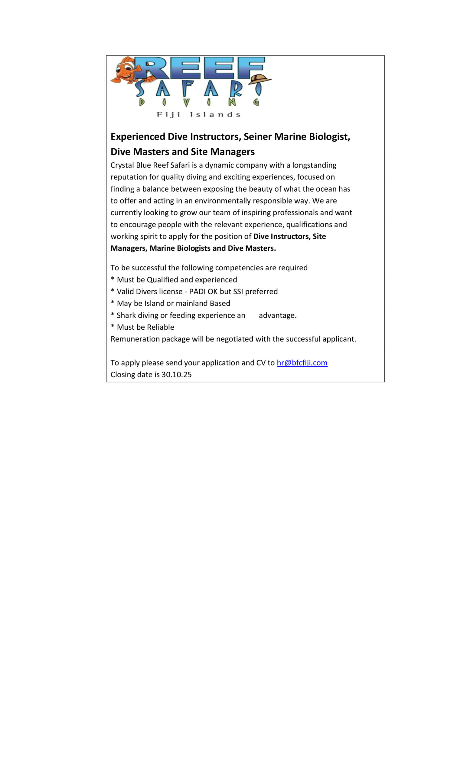 Experienced Dive Instructors, Seiner Marine Biologist, Dive Masters and Site Managers
