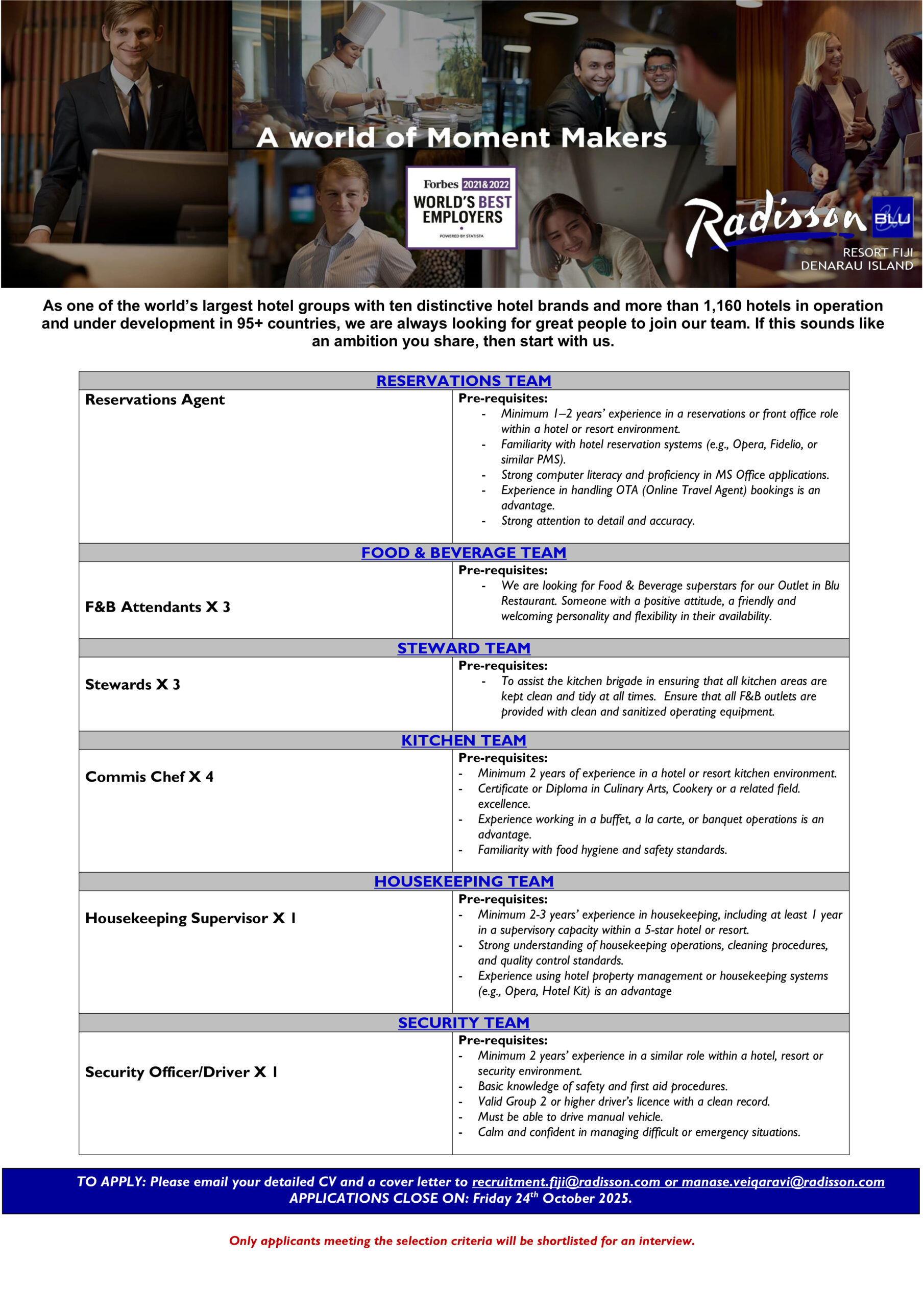 Multiple Roles Available